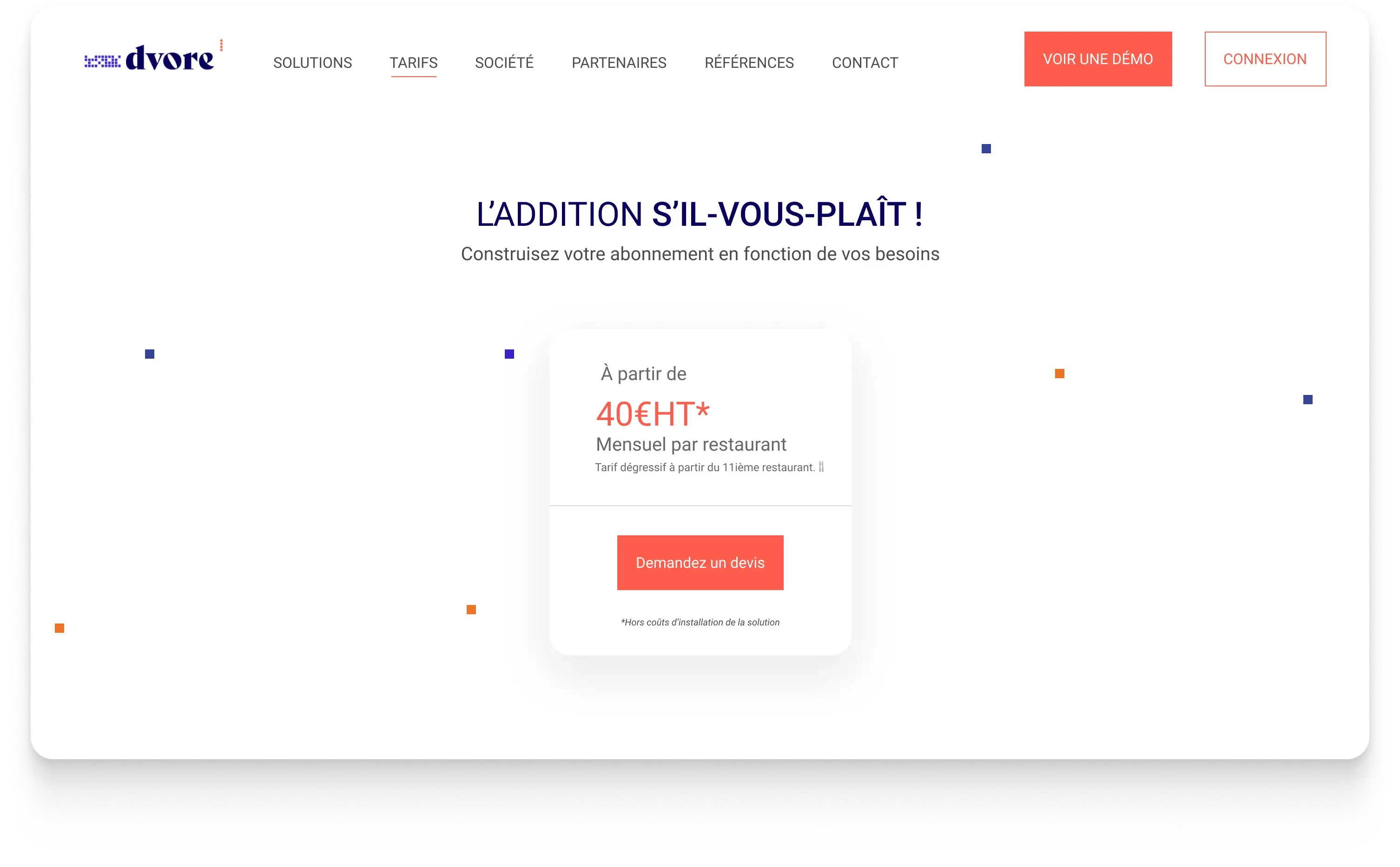 It needed to be reworked so that it was as easy to understand as possible, and more adapted to Dvore’s branding with floating pixels of different colors, the right shadows and font sizes and colors.